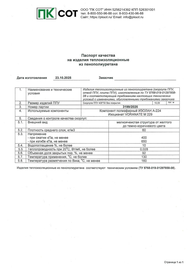 | Скорлупа ППУ 48х40 без покрытия | 48 | 30732-2020 | 40 | Пенополиуретан |