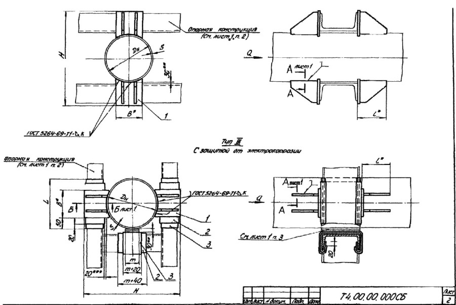 Опоры неподвижные лобовые двухупорные Т4