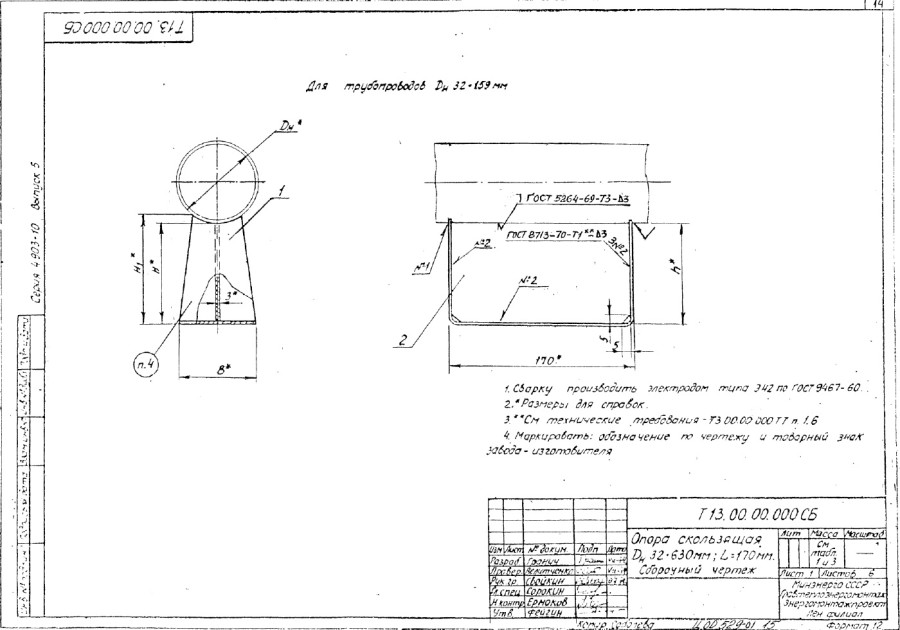 | Опора скользящая 530 Т13.34 серия 4.903-10 выпуск 5 | 530 | 14911-82 | Ст20 | — | грунт антикорозийный | Т13 |