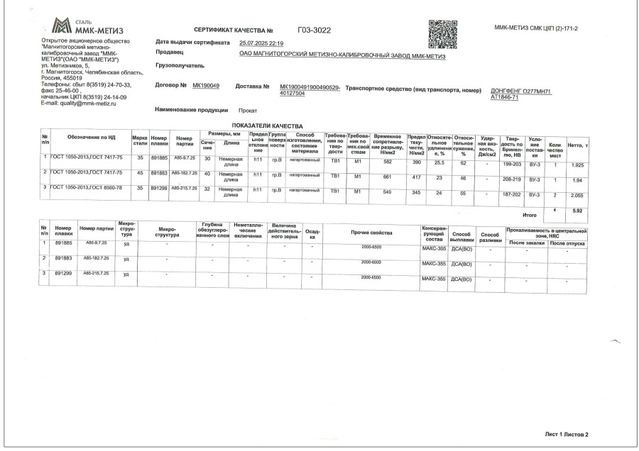 | Круг стальной горячекатаный 90 | 49,94 | 2590-2006 | Ст3 | Круглый | — |